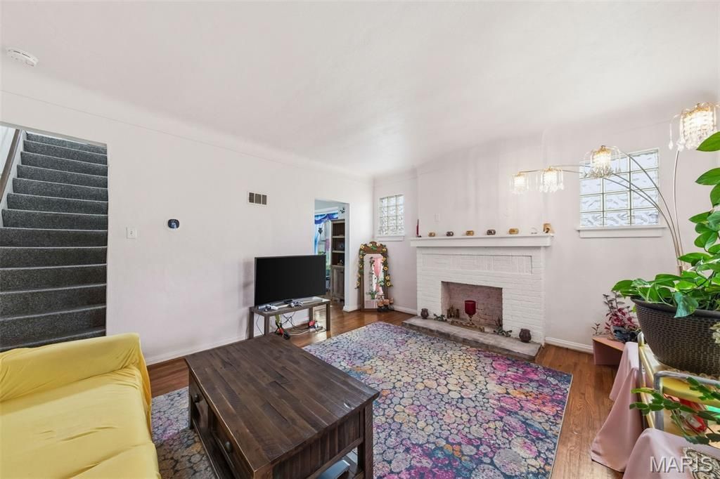 Occupying a prominent corner double lot in the heart of Overland, this 1.5-story brick home is a rare find for owner-occupants and savvy investors alike. This expansive property, which includes the lot at 2356 Huntington Ave, features a large, level yard and off-street parking for up to six cars. Inside, you'll find a functional footprint with over 1,000 square feet of living space, including a living room anchored by a cozy decorative fireplace and a kitchen remodeled just three years ago that opens to a covered deck. The main floor offers a full bath and a convenient bedroom with private balcony, while the upper level hosts two additional bedrooms. Significant recent upgrades provide peace of mind, including a brand-new roof (2025), a new electric panel (2021), and a professionally added retaining wall. The full walkout basement offers excellent storage or potential for added equity. Located just a short stroll from the scenic trails and fishing lake at Wild Acres Park, this home also qualifies for the BJC Healthcare 'Live Near Your Work program. Being sold in its current condition, this residence is a solid, updated canvas ready for your final touches.